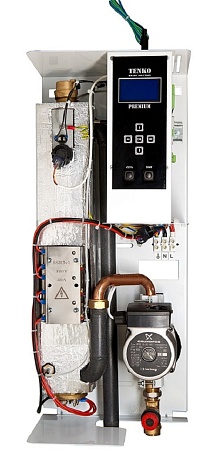 Электрические котлы серии «Премиум» ТМ Tenko предоставляют широкие возможности для управления работой устройства и обеспечивают максимальный комфорт и автономность эксплуатации при отоплении различных помещений с максимальной площадью 150 кв.м. Представленная линейка оборудования отличается наличием встроенного микроконтроллера и программной системы управления для полного контроля работоспособности котла. Модель котла «Премиум» имеет цифровой дисплей для настройки и отображения сервисной информации от трех датчиков температуры: комнатного (проводного или радио), датчиков на прямом и обратном трубопроводах системы отопления. Микроконтроллер осуществляет управление блоков ТЭНов и реле, а встроенный программный счетчик электроэнергии ведет статистику и позволяет оптимизировать работу. Бесшумная работа при коммутации обеспечивается твердотельными реле с водяным охлаждением. Модели электрокотлов «Премиум» производства компании Tenko укомплектованы циркуляционным насосом фирмы Grundfos (Дания), датчиком давления, автоматическим отводчиком воздуха, предохранительным клапаном и недельно/суточным программатором, которым возможно управлять с помощью wi-fi модуля. Дистанционное управление котлом осуществляется через любой браузер либо приложение на Android.